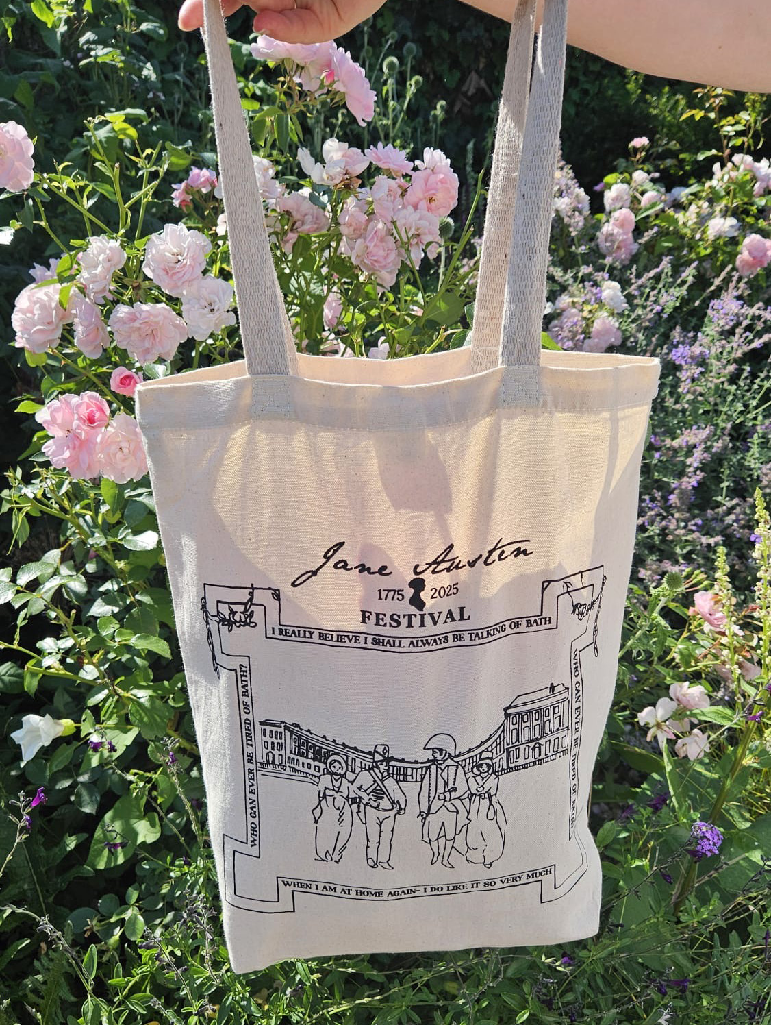 Order your £10 tote bag online to pick up during the 2025 Jane Austen Festival in Bath, at any of the following points:
